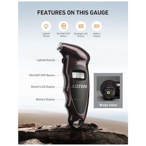 Este Calibrador de Pressão de Pneus foi aprimorado com fonte de alimentação substituível por bateria AAA, proporcionando maior praticidade. Incluindo 2 pilhas AAA, é fácil para qualquer pessoa fazer a substituição, sendo que as pilhas AAA duram mais do que as de moeda. Ideal para presentear homens e mulheres, o bico forma facilmente vedação com válvulas Schrader e Presta (com adaptador), oferecendo leituras rápidas e precisas em incrementos de 0,1. Com 4 configurações de medida, variando de 0 a 150 PSI, 0 a 10 Bar, 0 a 10 Kgf/cm² ou 0 a 1000 KPA. Basta pressionar o botão "ON/UNIT/OFF" para ligar a ferramenta, selecionar a escala desejada e desligar automaticamente em 30 a 40 segundos para economizar energia. Sua textura antiderrapante facilita a pegada, sendo ergonômico para mãos masculinas e femininas. Projetado para manter a pressão correta dos pneus, reduzir o desgaste e prolongar sua vida útil, com leitura digital instantânea e clara no visor. Pilhas inclusas. Um presente perfeito de acessório automotivo para homens. Versátil para uso em carros, caminhões, motos, bicicletas, etc.