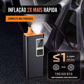 Calibrador Compressor E Bomba De Ar Portátil Com Lanterna Nomad Bivolt O Calibrador Compressor e Bomba de Ar Portátil com Lanterna Nomad Bivolt é uma solução prática e eficiente para calibrar pneus de bicicletas, motocicletas, carros e até bolas esportivas. Com uma mangueira de ar de 25 cm e velocidade de insuflação de 22 L/min, ele oferece rapidez e precisão de até 1 PSI para mais ou para menos, em uma faixa ajustável entre 3 e 150 PSI. Equipado com um painel digital intuitivo, botões de fácil uso e uma lanterna integrada, é ideal para uso em diversas condições, inclusive em baixa luminosidade. Sua bateria, com autonomia de 25 minutos em uso contínuo, recarrega em até 250 minutos e proporciona desempenho confiável para diferentes necessidades. Compacto e silencioso 70 dB , é perfeito para uso doméstico ou em viagens. Atributos do Produto: Referência: T801 Código: T801 Código de Barras: 7908941200721 Cor: Preto e Laranja : 3 Meses Fabricante Marca: Nomad Modelo: T801 Tipo de bateria: Bateria Ions de Lítio 4000mAh Voltagem: Bivolt USB-C Detalhes e Especificações Técnicas: Nível de ruído 70dB Mangueira de ar de 25 cm Velocidade de insuflação 22 L/min Carregamento de 180 a 250 minutos Precisão de 1 PSI para mais ou para menos Faixa de Inflação 3 - 150psi / 0.2-10.3 bar Botões liga/desliga, modo, lanterna, aumentar e diminuir pressão Ideal para calibrar pneu de bicicletas, motocicleta, carros e bolas Painel digital com indicador de bateria, pressão, unidade barométrica Bateria com duração de aproximadamente 25 minutos em uso contínuo Pressões/cargas elevadas e temperaturas baixas resultam em menor duração de bateria Dimensões do Produto: Altura: 16,5 cm Largura: 4,3 cm Comprimento: 7,3 cm Peso: 0,574 Kg Conteúdo da Embalagem: 01 Calibrador Compressor E Bomba De Ar Com Lanterna Nomad Bivolt 01 Mangueira de ar de 25cm 01 Saco de armazenamento 01 Cabo USB-C para carregamento 01 Bico para inflar bola 01 Bico conversor 01 Manual de instruções Importante Produtos de decoração não inclusos. Imagens meramente ilustrativas; As cores dos objetos podem sofrer alterações devido a luminosidade, configurações do monitor e até mesmo a percepção do usuário; Os dados divulgados são de responsabilidade do fabricante/fornecedor.