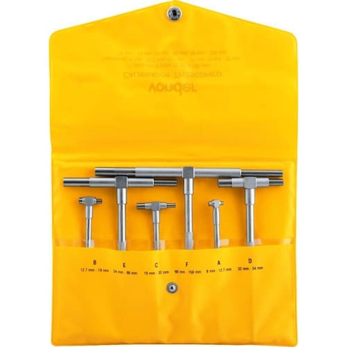 Marca: VonderConteúdo da embalagem:1 Jogo com 6 calibradores.Destaques e diferenciais:Possibilita maior precisão nas medições. Equipamento de fácil manuseio.Aplicações e dicas de uso:Indicado para verificar medidas internas em furos, canais, rebaixos, entre outros. Necessário o uso de micrômetro ou paquímetro para fazer a leitura da medida.Detalhes TécnicosQuantidade de peças por embalagem: 6 Capacidade: 8 mm - 12,7 mm; 12,7 mm - 19 mm; 19 mm - 32 mm; 32 mm - 54 mm; 54 mm - 90 mm; 90 mm - 150 mm Comprimento: 3 com 110 mm e 3 com 135 mm Precisão: +/- 0.01 mm Massa aproximada peso kg : 0,264 kg - E CDC : legal: 90 dias