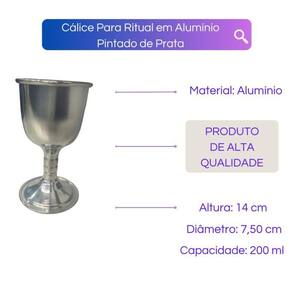 Cálice Para Ritual em Alumínio Pintado de Prata14cm 200 ml Descubra a magia com nosso Cálice de Rituais e Missas em Alumínio. Com 14cm de altura e capacidade para 200ml, este cálice une elegância e praticidade.