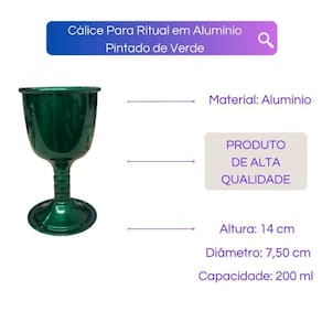 Cálice Para Ritual em Alumínio Pintado de Verde 14cm 200 ml Descubra a magia com nosso Cálice de Rituais e Missas em Alumínio. Com 14cm de altura e capacidade para 200ml, este cálice une elegância e praticidade.