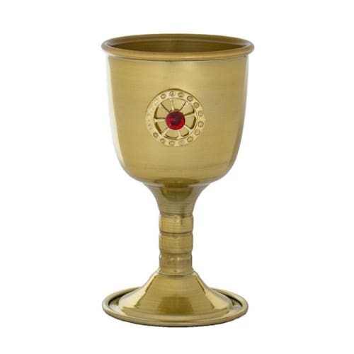 Cálice Ritual Roda Cigana Dourada em Alumínio 14 cm 200 ml