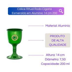 Cálice Ritual Roda Cigana Esmeralda em Alumínio 14 cm 200 ml