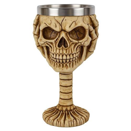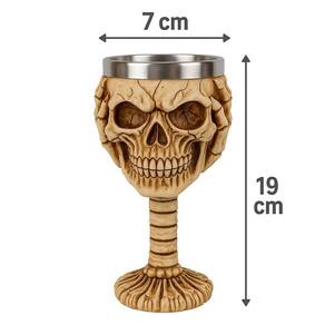 Cálice Taça Decorativa Caveira Não Ouço Vinho Chopp Cerveja 180ML Metal e Resina Colecionável Taça Medieval Caveira Gótica em Resina com Interior em Inox - 180ml