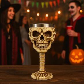 Transforme qualquer ocasião em uma experiência única com esta incrível Taça Medieval em formato de Caveira Feita em resina de alta resistência, esta peça é esculpida com riqueza de detalhes que imitam ossos envelhecidos, criando um visual marcante e sombrio. O design apresenta uma caveira tridimensional com expressão realista e rachaduras propositais, apoiada por uma base em forma de coluna vertebral e pés ósseos. Um verdadeiro destaque para fãs do estilo gótico, medieval ou colecionadores de peças temáticas. O interior conta com um revestimento em aço inoxidável, ideal para o consumo de bebidas com segurança e higiene. A camada interna mantém a temperatura do líquido por mais tempo, além de facilitar a limpeza após o uso.