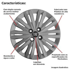 A Calota Punto Idea Siena Aro 15 Grafite Logo Metal 208Cp é fabricada em plástico resistente e possui dupla camada de verniz, garantindo durabilidade e resistência. Compatível com os modelos Doblô, Grand Siena, Idea, Linea e Punto, essa calota segue os padrões e exigências da montadora.