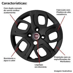 Com características de alta qualidade, a calota é fabricada em plástico resistente, com dupla camada de verniz, o que a torna resistente à água e ao calor. Além disso, é feita de acordo com os padrões da montadora, garantindo um encaixe perfeito.