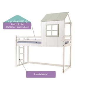Cama Alta Infantil Cabana Family Casatema Branco/Verde