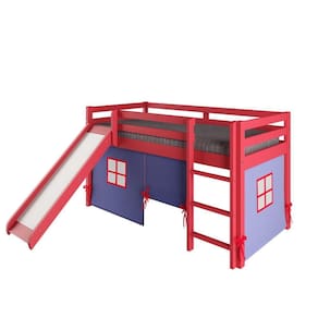 Cama Alta Kids com Escorregador e Tenda em Madeira Maciça/MDF Vermelho/Azul. A Cama Alta Kids com Escorregador e Tenda transforma o quarto do seu filho(a) em um local de alegria e diversão. Cama de qualidade produzida com madeira maciça de Pinus de reflorestamento e com algumas partes em MDF, além de ter um acabamento em Laca. A escada e o escorregador são reversíveis, ou seja, podem ser montados nos dois lados (direito e esquerdo) da cama. O escorregador vem com dois ganchos de metal para encaixe na barra lateral da cama e é de fácil remoção. A tenda é produzida de tecido e nas cores que melhor combinam com o produto e que dão encantamento ao quarto. Recomendações de Uso, Manutenção e Limpeza: Não armazenar ou utilizar o produto em locais com excesso de umidade. Para limpeza, não utilizar produtos químicos e abrasivos, usar apenas com pano umedecido, para garantir a maior durabilidade do móvel. Seguir rigorosamente as instruções de uso contidas no Manual de Montagem. Marca: Arbol Móveis