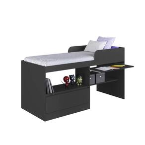 A cama alta multifuncional solteiro com estação de trabalho CJ4080 possui estrutura em MDP 15mm e acabamento FF fosco. Possui montagem opcional direita/esquerda, protetor antiqueda com canto arredondado e perfil T. A cama suporta até 100kg . Possui tampo/escrivaninha com corrediça metálica que suporta 5kg, 1 prateleira/degrau que suporta até 50kg, 1 prateleira que suporta 5kg e 1 porta basculante com dobradiça metálica. O material do estrado é eucalipto/MDP, sendo que a altura do estrado até o chão é de 101cm. A medida máxima do colchão indicado: SOLTEIRO: 78cm x 188cm. Não necessita fixar na parede. Conteúdo da embalagem: móvel, ferragens e manual de montagem. A fixação das peças e/ou acessórios é feita por parafusos e cavilhas. Para uma limpeza mais efetiva, utilizar apenas pano macio umedecido e sabão neutro. Não utilizar produtos abrasivos. Garantia de 03 meses contra defeitos de fabricação. Medidas do produto (AxLxP): 106,4x192x82cm. Peso do produto: 55,6kg. Não acompanha colchão.