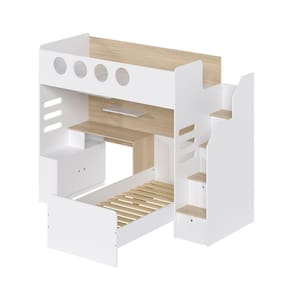 Itens Inclusos: 1 Cama alta com escada baú, 1 escrivaninha com armário baixo 1 porta, 1 cama de solteiro, 1 painel com 2 prateleiras, Manual de montagem e Kit ferragens
