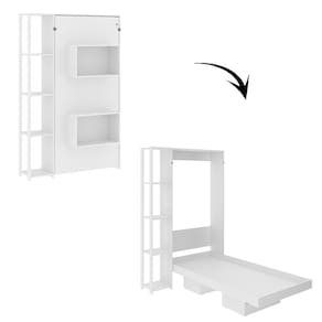Características: Estrutura em MDP Acabamento BP Possui Sistema de Articulação (Dobrável) e Trava Possui Chave para Uso Fechada 02 Nichos 04 Prateleiras Externas Deve Ser Obrigatoriamente Fixada na Parede Suporta até 110kg sem Impacto ACOMPANHA COLCHÃO 188 x 88 cm