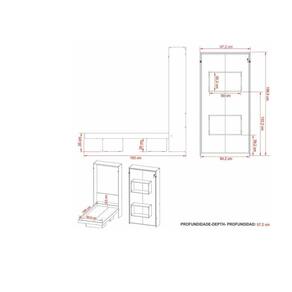 Altura: 198,5cm | Largura: 97,2cm | Profundidade: 57,2cm (fechada) - 193cm (aberta)