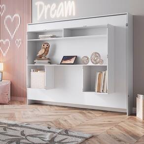 Cama Articulável Horizontal Casal Com Estação De Trabalho 140 Latino Branco Otimizar espaços é uma das metas da art in moveis, por isso criamos a cama articulável horizontal de solteiro. Criada para ambientes que durante o dia precisam de espaço e decoração e à noite necessitam de uma cama confortável para descanso, ou até mesmo uma cama extra para visitas. Este produto foi produzido em excelente material mdp 15 mm e com acabamento em finish foil acetinado, que garante maior resistência e qualidade em seu móvel. A essência de criar soluções que trazem mais conforto sua vida é o grande diferencial dos produtos art in móveis. Cada nova ideia é uma mistura de criatividade, funcionalidade e muita dedicação. Deve ser feita com pano macio e seco ou levemente umedecido com água e sabão neutro. Não devem ser utilizados abrasivos como palha de aço e objetos cortantes. Características: Material: MDP Acabamento: finish foil acetinado Pés: 16 Portas: Não Gavetas: Não Ferragens: sim Altura estrado 28 cm 2 travas de segurança Prateleiras externas: 8 Necessário fixação na parede Manual de montagem detalhado: sim Peso necessário para articular sem colchão 28 kg Para colchões de 190 x 140 x por até 18 cm de altura Peso total suportado pelo produto: 2 pessoas de 90 kg
