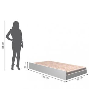Características: Acabamento pintura UV Altura do estrado até o chão 9 cm Estrutura do estrado madeira maciça Estrutura em MDF Possui roldanas Tipo de estrado removível Tamanho do Colchão Indicado 188x88 cm