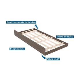 Material de Estrutura - MDP/BP Tipo de Pintura - Ultravioleta Tipo de Acabamento da Pintura - Semi Brilho Material do Estrado - Estrado de Madeira Reflorestada Tamanho da Cama - Solteiro Tamanho do Colchão Indicado - Solteiro 88x188 Altura da cama recomendada - 18
