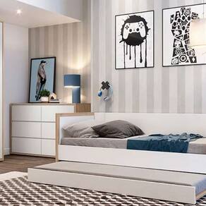 que tal a cama auxiliar wood? se a família aumentou ou seu filho chegou na fase de receber visitas, conte coama auxiliar wood para oferecer um leito extra no quarto, estruturada em materiais resistentes, ela confere toda a segurança necessária às noites de sono, assim todo mundo poderá relaxar depois de um dia de brincadeiras. além da usabilidade, a cor branca torna fácil combiná-la com a decoração ou ir mudando a decoração do quarto de acordo com o crescimento do dono do pedaço. ah, por falar nisso, ela se encaixa perfeitamente na cama principal da mesma linha, mas, se você já tiver outra, lembra de conferir as medidas, certo? ;)