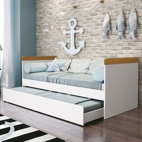 Cama Babá Nuth Com Auxiliar Branco/savana - Reller Móveis Branco/savana Cama Babá Nuth com Auxiliar - Reller Móveis O bebê cresceu, e você está a procura de moveis infantis para o quarto da criança ? Apresentamos mais uma linda opção, bicama babá com cama auxiliar linha Nuth, fabricado pela Reller pensando no conforto da criança na hora do sono. ESPECIFICAÇÕES: - 100% MDF - Bordas boleadas e laqueadas com tinta atóxica - Cabeceira Lisa - Estrado de Madeira Reflorestada - Grade de proteção - 04 Rodízios na cama auxiliar - Colchão Recomendado para Cama Principal: 1,88 x 0,88 x Espessura Livre - Colchão Recomendado para cama auxiliar:1,88m x 0,88 x 0,12cm - Acabamento UV (Atóxico)