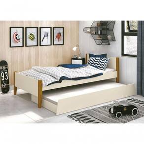 Cama Babá Solteiro Com Auxiliar Simba Areia Fosco Com Madeira - Moveisaqui - Bege