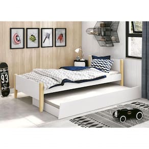 Com traços e linhas retas, a Cama com Auxiliar Simba - MoveisAqui, agrega a contraposição do MDF com a madeira maciça, trazendo estilo a decoração do quarto das crianças, com a cama auxiliar inclusa é ideal para conciliar de forma confortavél duas crianças.