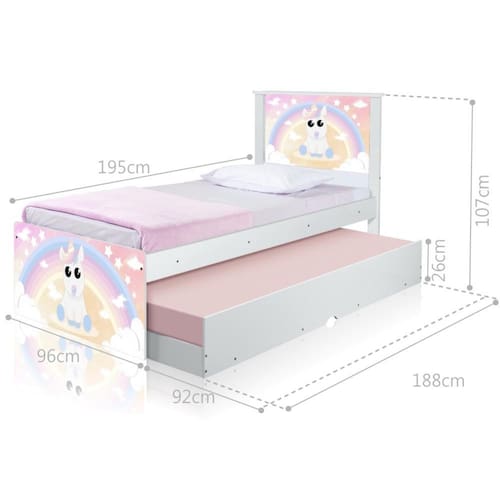 A Bicama Juvenil Adesivada Unicórnio Babyé belíssima e conta com um design funcional, que ocupa pouco espaço no ambiente.