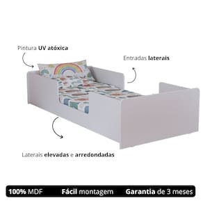 Diferenciais Modelo montessoriano: estimula independência e segurança infantil Estrutura em MDF de alta durabilidade Acabamento branco liso, moderno e fácil de limpar Laterais com proteção parcial contra quedas Design de cantos arredondados e seguros Colchão incluso, com densidade e conforto ideais para crianças Ideal para transição do berço para a cama Montagem prática com manual incluso Observações Importantes · Produto acompanha colchão, mas não inclui itens decorativos das imagens · Requer montagem – acompanha manual e kit de ferragens · As cores podem variar de acordo com o monitor ou lote de fabricação · Imagens meramente ilustrativas · Certifique-se de que todas as instruções mencionadas no manual e todas as ferragens listadas estejam corretamente inclusas na embalagem. · Verifique se há alguma peça danificada. Caso encontre, forneceremos a assistência necessária dentro do prazo de garantia. Marca: Não Informado