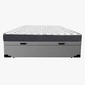 Cama Base Box Baú Casal Reforçado Sintético Cinza + Colchão Casal Reforçado D33 17x138x188