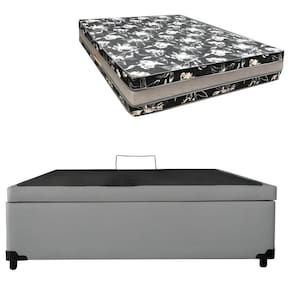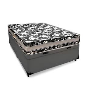 Cama Base Box Baú Casal Super Black Sintético Cinza + Colchão Casal Super Black D33 28x138x188