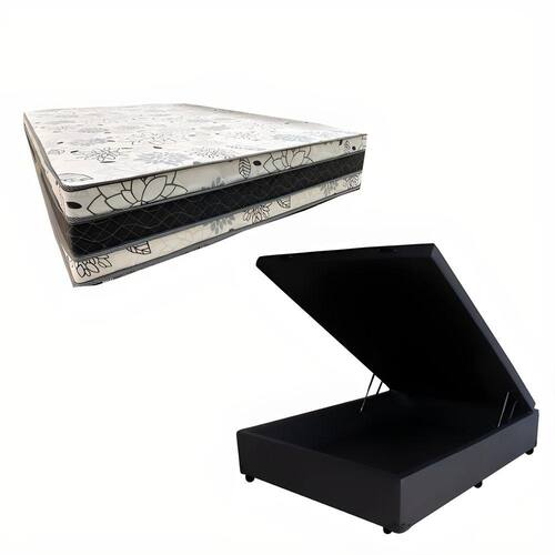 Cama Base Box Baú Casal Super Confort Sintético Preto + Colchão Casal Super Confort D33 28x138x188