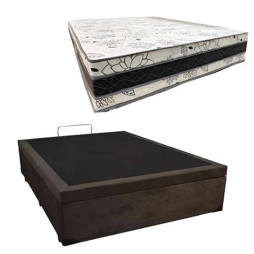 Cama Base Box Baú Casal Super Confort Suede Marrom + Colchão Casal Super Confort D33 28x138x188