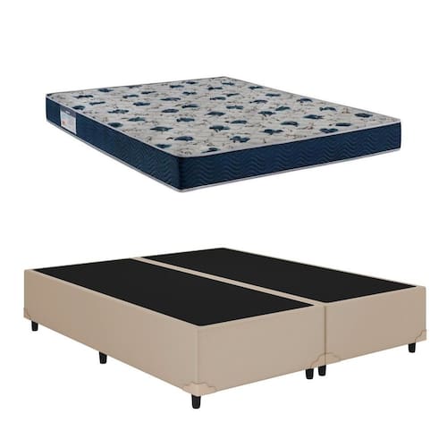 Cama Base Box Casal Bipartido Corino Bege + Colcão Iso 60 D28 138x188x18 - Ortobom