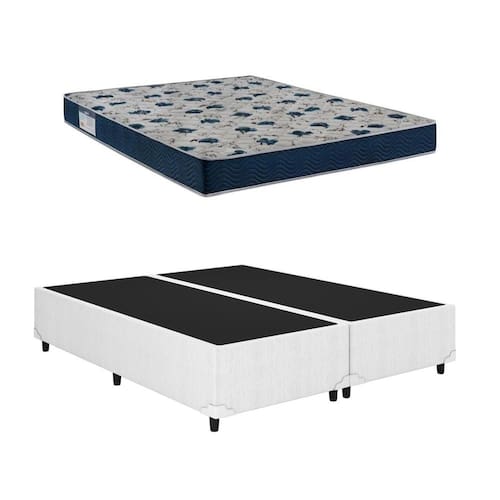 Cama Base Box Casal Bipartido Corino Branco + Colcão Iso 60 D28 138x188x18 - Ortobom