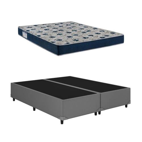 Cama Base Box Casal Bipartido Corino Cinza + Colcão Iso 60 D28 138x188x18 - Ortobom