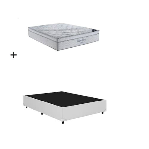 Cama Base Box Casal Corino Branco + Colchão Freedon Molas Ensacadas D33 138x188x32 - Ortobom