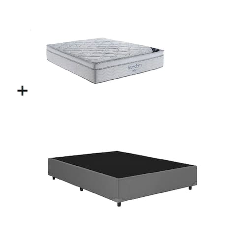 Cama Base Box Casal Corino Cinza + Colchão Freedon Molas Ensacadas D33 138x188x32 - Ortobom