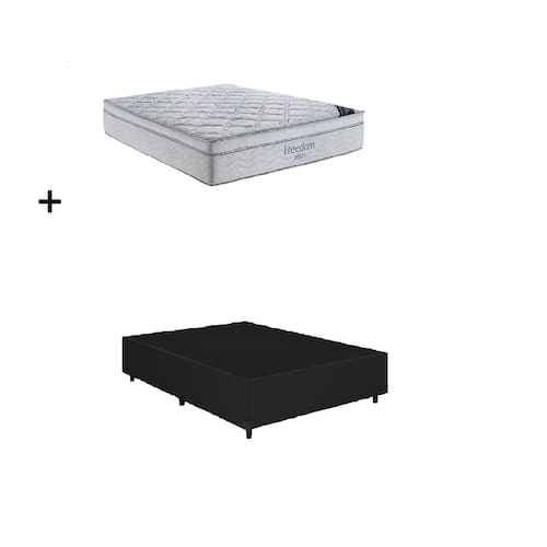 Cama Base Box Casal Corino Preto + Colchão Freedon Molas Ensacadas D33 138x188x32 - Ortobom