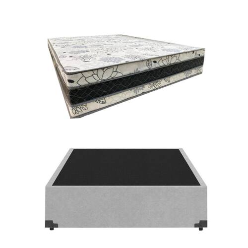 Cama Base Box Casal Super Confort Suede Cinza + Colchão Casal Super Confort D33 24x138x188