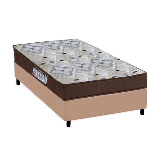 Cama Base Solteiro Corino Bege + Colchão Iso 150 D45 88x188x18 - Ortobom