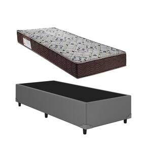 Cama Base Solteiro Corino Cinza + Colchão Iso 150 D45 88x188x18 - Ortobom