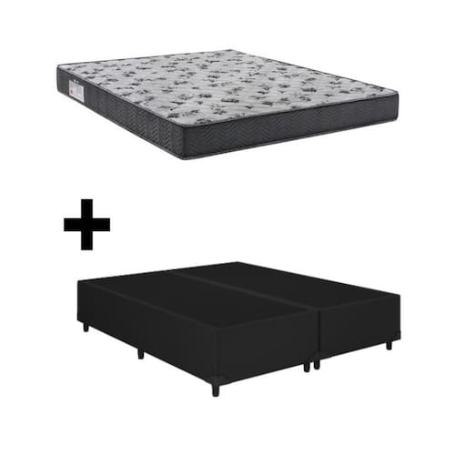 Cama Base Casal Bipartido Corino Preto + Colcão Iso 100 D33 138x188x18 - Ortobom