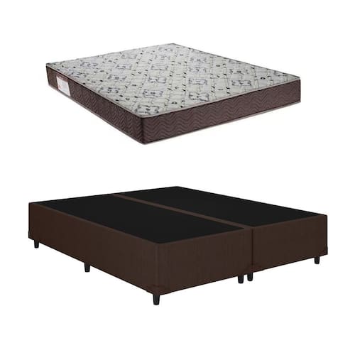 Cama Base Queen Bipartido Corino Marrom + Colcão Iso 150 D45 158x198x18 - Ortobom