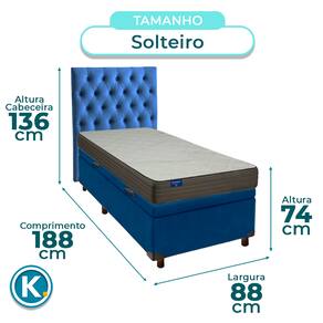 Cama + Bau Azul e Colchão D33 Solteiro - Orthotech Inducol + Cabeceira
