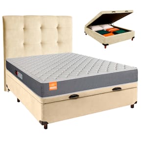 Cama + Bau Blindado e Colchão D23 Casal - Pro Inducol + Cabeceira - Bege