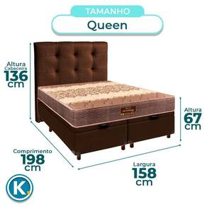 Suporta até 120kg, ideal para uso frequente com firmeza equilibrada Base baú Queen com 42cm de altura e amplo espaço interno para organização