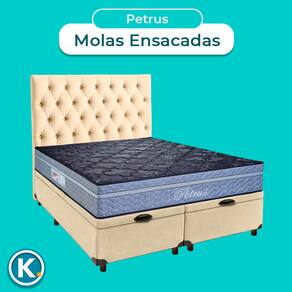 Cama + Bau Blindado e Colchão Molas Ensacadas Queen - Petrus Paropas + Cabeceira - Bege