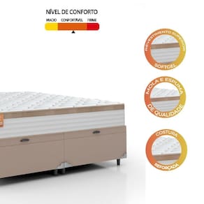 MODELO: Cama Baú Casal Queen Colchão Molas Ensacadas Real 158x198x68cm - Suporta até 130Kg Por Pessoa