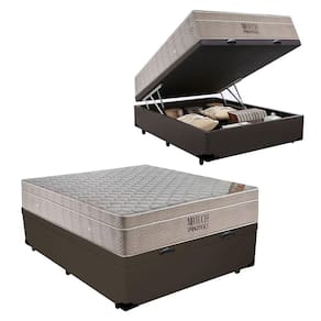 Cama Baú Casal Sintético + Colchão Casal Ortobom Airtech Molas Ensacadas 65x138x188 Marrom