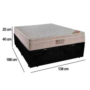 Cama Baú Casal Suede + Colchão Casal Ortobom Airtech Molas Ensacadas 65x138x188 - Preto
