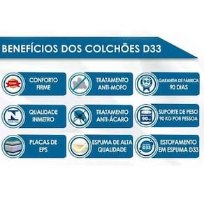 O Colchão Ortobom Colchão Iso Duplo Conforto é a da Ortobom entre os colchões mistos. De um lado possui o seu lado macio com suporte e camada de conforto em espuma D28 Pró Aditivada de Alta Performance, Ideal para pessoas com até 80 quilos. Do outro lado possui o seu lado firme com suporte e camada de conforto em espuma D33 Pró Aditivada de Alta Performance, Ideal para pessoas com até 100 quilos. O tampo é bordado em Matelassê, que uma camada extra de conforto. Seu revestimento é em Poliéster com tratamento e .