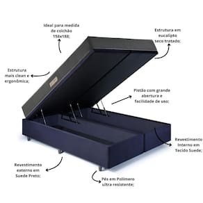 Conjunto Baú Queen Bipartido + Colchão Dual Firm Espuma Ecoflex Queen 158x198O Dual Firm possui como diferencial o pillow duplo, no sistema dupla face, que permite utilizar os dois lados do colchão. É durabilidade, qualidade e conforto em dobro!Por que escolher a cama Baú Queen?Conheça os diferenciaisCompromisso com o meio ambienteO Baú Queen Bipartido conta com Madeira de eucalipto tratada, proveniente de reflorestamento, com padrão de qualidade de exportação;A embalagem é confeccionada com materiais 100% reciclados e a empresa conta com logística reversa.Cuidado nos mínimos detalhes: logística nota 10O produto é 100% embalado com papelão e plástico, o que garante a integridade do produto, após todo o processo logístico.Medidas do BaúMedida Externa:158x198x34cm sem pés158x198x42cm com pésMedida Interna:127x177x25cmCaracterísticas estruturais do Baú:- Tecido em Suede:- TNT de alta gramatura;- Costura reta;- Acabamento impecável: sem parafusos a mostra no fundo do baú que é parafusado por baixo;- Pés em Polímero.Cuidados e higienização:O produto é de fácil higienização, pois conta com tratamento impermeabilizante, assim, apenas um pano umedecido com água é suficiente.*Não é indicado o uso de produtos químicos.Características Dual Firm Espuma EcoflexAcabamento:Pillow DuploTecido Plano EstampadoColchão indicado para uso de até 120kg individual.Nível de conforto: FirmeItens que serão entregues:- 1 Cama Baú Queen 158x198x42cm (duas peças 79x198x42)- 1 Caixa de Pezinhos- 1 Arco de apoio que será fixado na parte de trás do baú para colchão não escorregar.- 1 Colchão Dual Firm Queen 158x198x22cmINFORMAÇÕES IMPORTANTES:- Confira as dimensões do produto e certifique-se de que estão adequadas aos elevadores, portas e corredores do local da entrega, pois não fazemos a montagem e desmontagem do produto e/ou portas e janelas, nem içamento pelo lado de fora do prédio ou da residência.- A transportadora não realiza a montagem do produto, não sobe escadas, apenas elevadores, caso não suba por elevador, a responsabilidade de subir o produto é do cliente.- É informado previamente o dia que será realizada a entrega, mas não é feito agendamento de horário.- Foto meramente ilustrativa